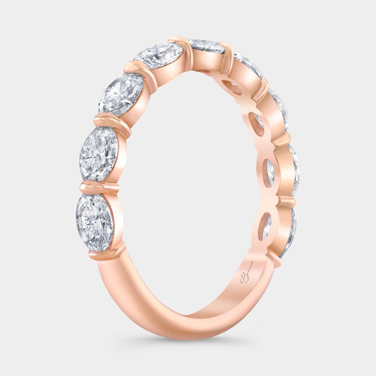 0.75ct Natural Oval Diamond 7 Stone Rose Gold Wedding Band