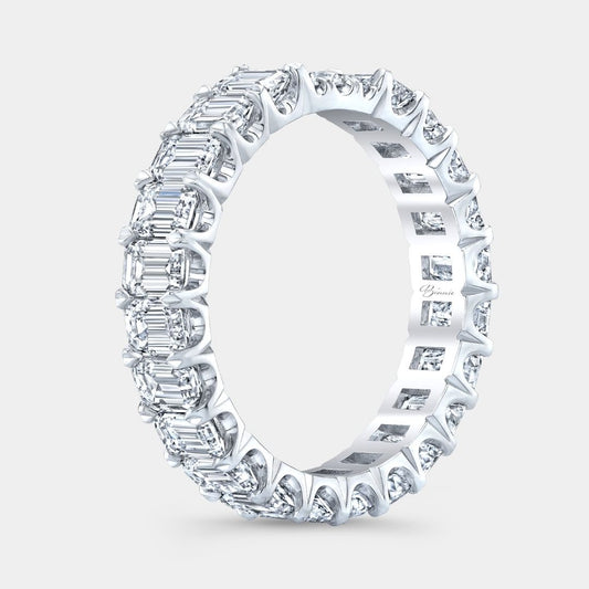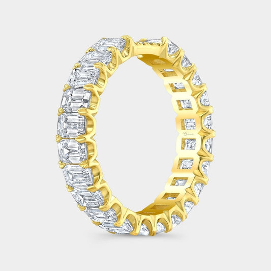 3.5ct Lab Grown Emerald Cut Diamond Contour 3.80mm Yellow Gold Eternity Band
