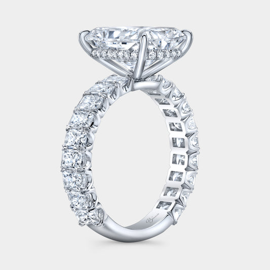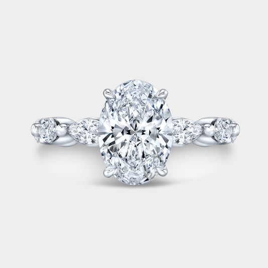 Oval Diamond Hidden Halo with Single Shared Prong Marquises & Round 4 Prong Platinum Engagement Ring