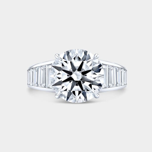 Round Diamond Graduating Channel Set Baguette Diamonds Platinum Engagement Ring