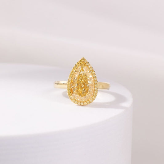 3.6ct Pear Shape Yellow Lab Grown Diamond Halo Solitaire Engagement Ring