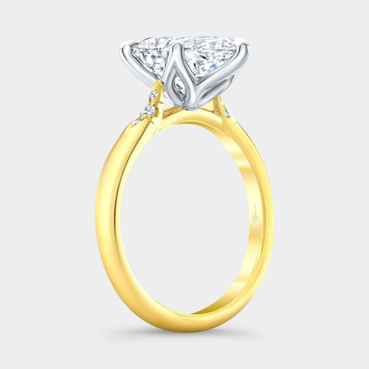 2.42ct Lab Grown Cushion Tulip Low Cathedral Pave Diamond Yellow Gold And Platinum Engagement Ring