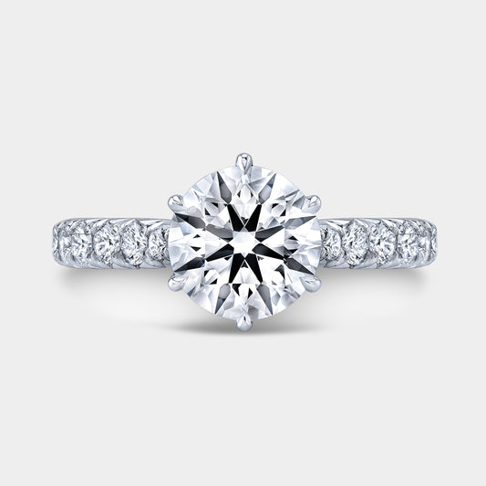Round Diamond Tulip with French Pave Platinum Engagement Ring