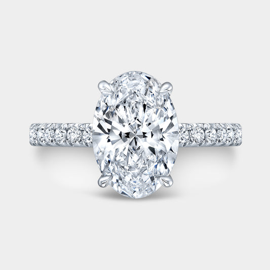 Oval Diamond Tulip French Pave Platinum Engagement Ring