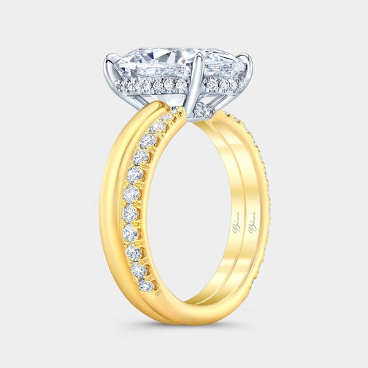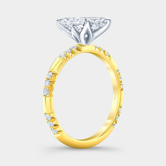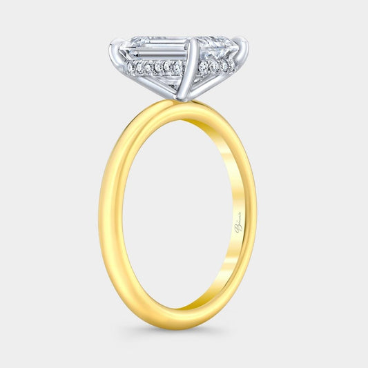 The two-tone design adds depth and dimension to the ring, allowing you to celebrate the individuality of your love story. Whether you choose the cool sophistication of platinum with the warmth of yellow gold or the modern contrast of white gold paired with rose gold, each ring is meticulously crafted to enhance the beauty of the center diamond. The subtle interplay of metals creates a look that’s bold, sophisticated, and full of character.