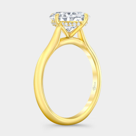 Oval Diamond North South Set Hidden Halo Tapered Cathedral Solitaire Yellow Gold Engagement Ring