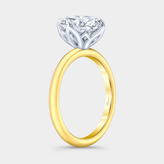 Oval Diamond North South Set Tulip Solitaire Peekaboo Diamonds Yellow Gold And Platinum Engagement Ring