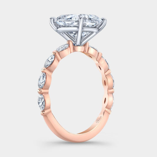 Cushion Diamond With Marquise Accents Rose Gold And Platinum Engagement Ring