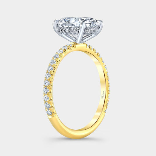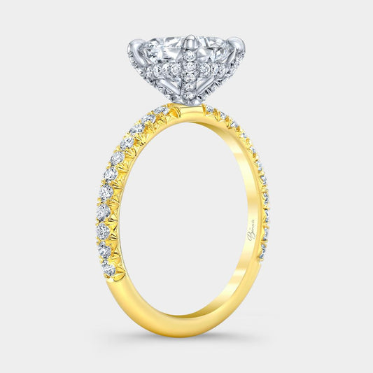 Oval Diamond Hidden Halo with French Pave Yellow Gold And Platinum Engagement Ring