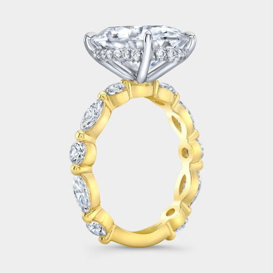 Oval Diamond Hidden Halo Single Shared Prong Round & Marquise Band Yellow Gold And Platinum Engagement Ring