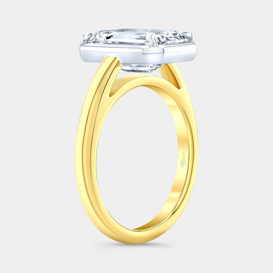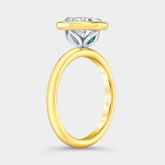 Emerald Diamond Mira Bezel Solitaire Yellow Gold And Platinum Engagement Ring