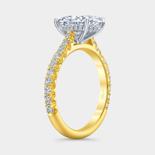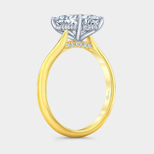 The two-tone design adds depth and dimension to the ring, allowing you to celebrate the individuality of your love story. Whether you choose the cool sophistication of platinum with the warmth of yellow gold or the modern contrast of white gold paired with rose gold, each ring is meticulously crafted to enhance the beauty of the center diamond. The subtle interplay of metals creates a look that’s bold, sophisticated, and full of character.