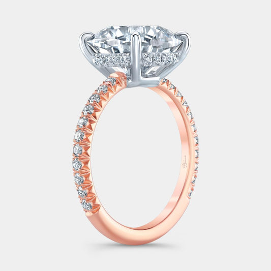 Round Diamond Hidden Halo Solitaire Rose Gold and Platinum Engagement Ring
