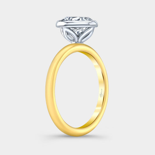 Cushion Diamond Bezel Set Tulip Solitiare Yellow Gold And Platinum Engagement Ring