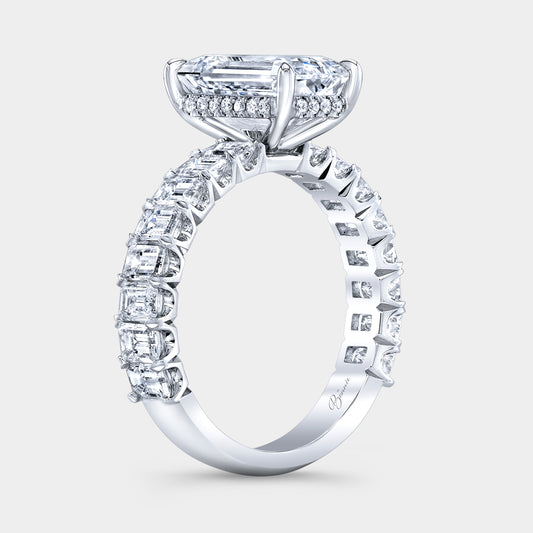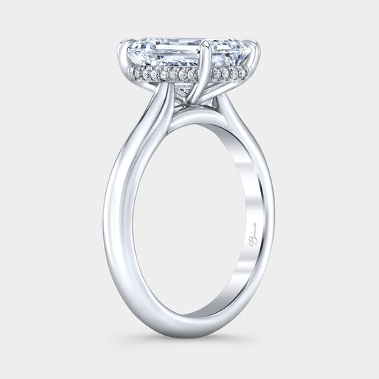Emerald Diamond Hidden Halo with Emerald Cut Diamonds Platinum Engagement Ring