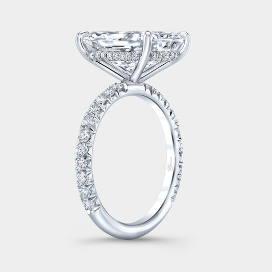 Radiant Diamond Hidden Halo French Pave Platinum Engagement Ring