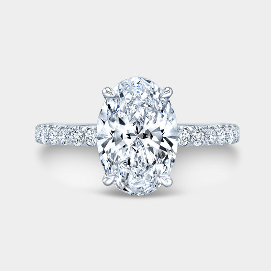 Oval Hidden Halo U Pave Platinum Engagement Ring