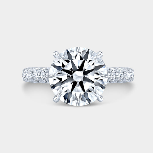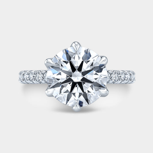 Round Diamond Tulip with French Pave Platinum Engagement Ring