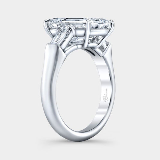Emerald Diamond 3 Stone with Tapered Baguettes Platinum Engagement Ring