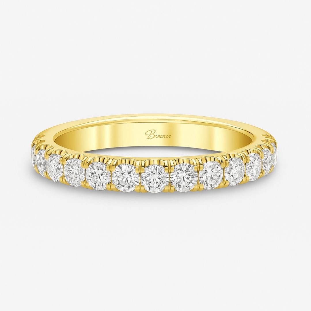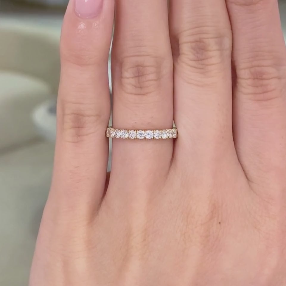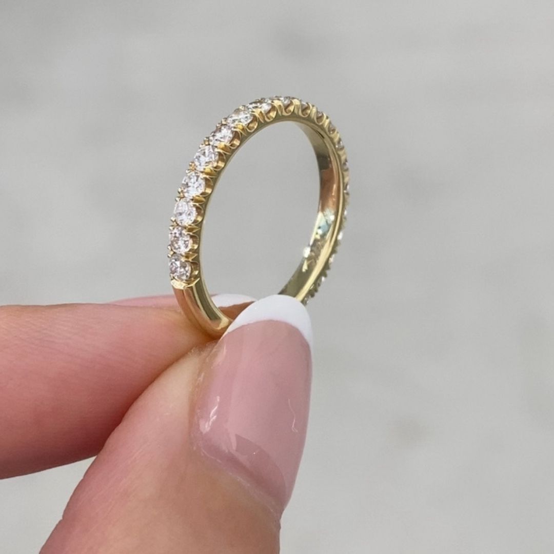 0.75ct Lab Grown Round Diamond 2.40mm U Pave Yellow Gold Wedding Band