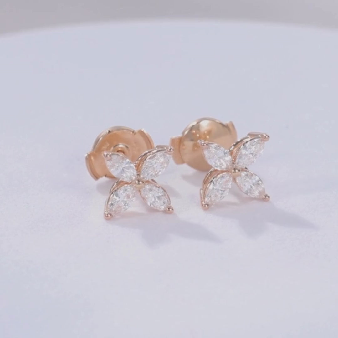 0.90ct Natural Marquise La Fleur Diamond Stud Earrings, 18k Rose Gold