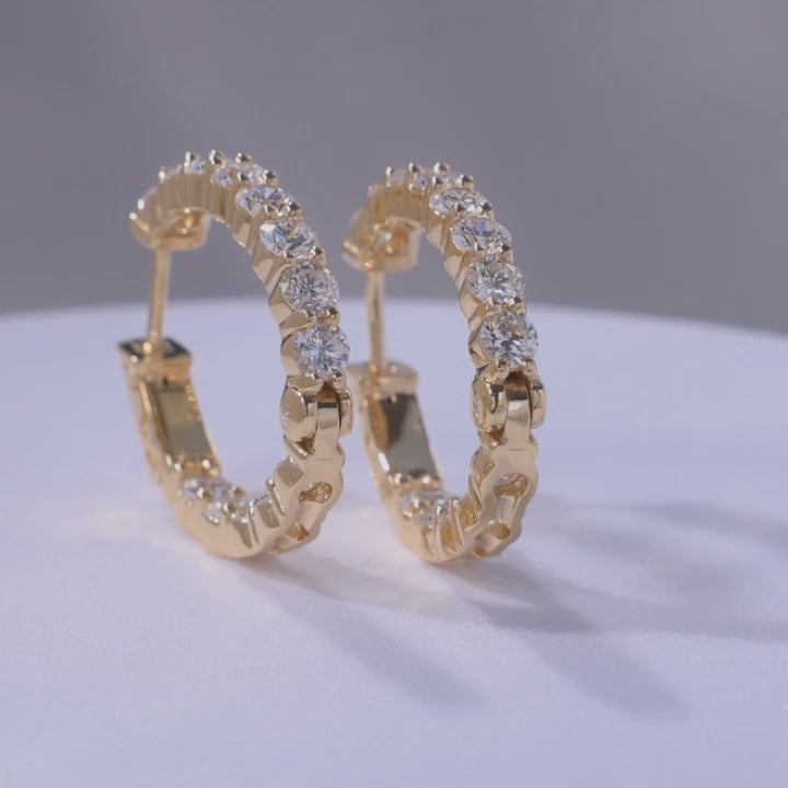 1 Inch, 3.27ctw Lab Grown Round Diamonds, Inside Out Hoop Earrings, Shared Prong, 14k Yellow Gold