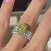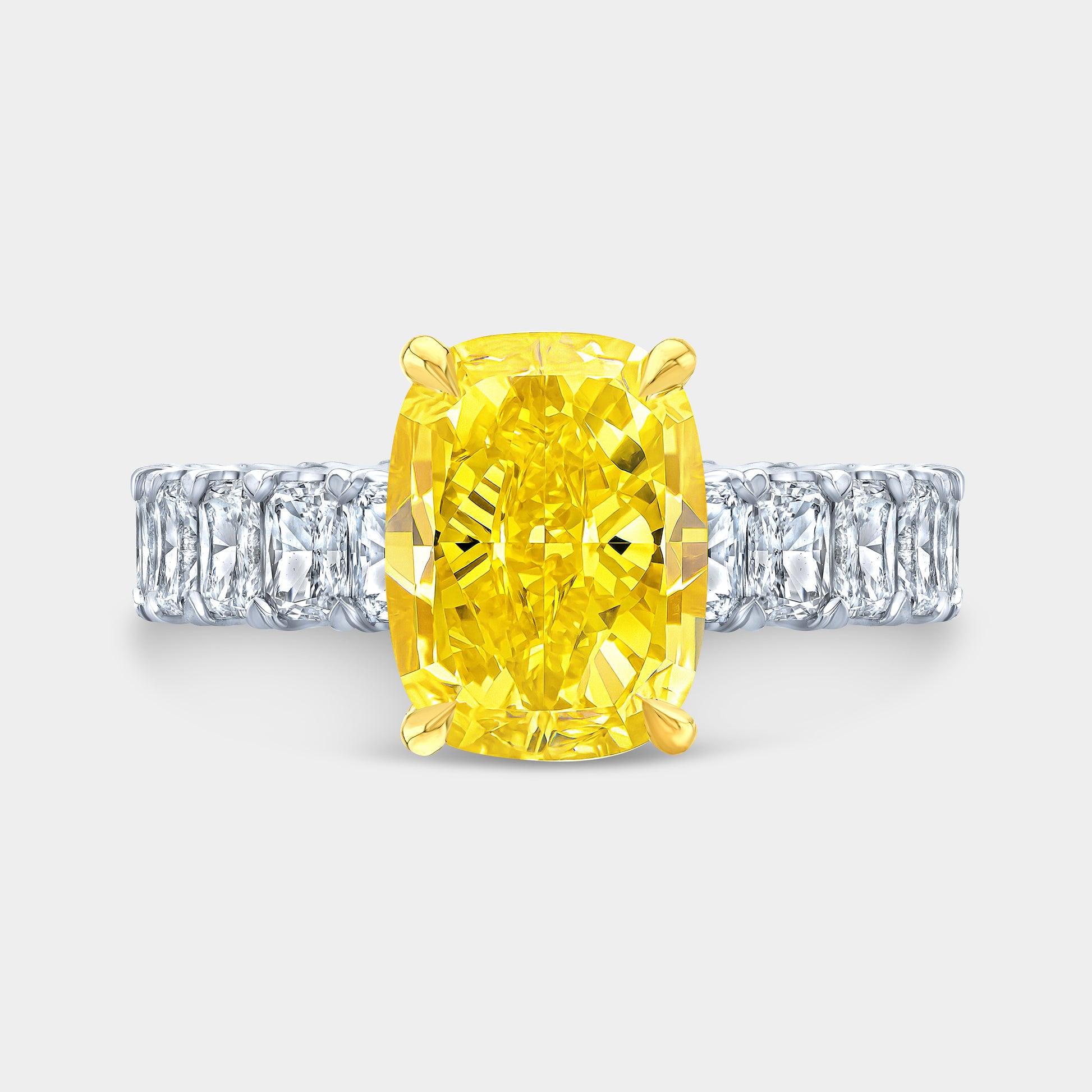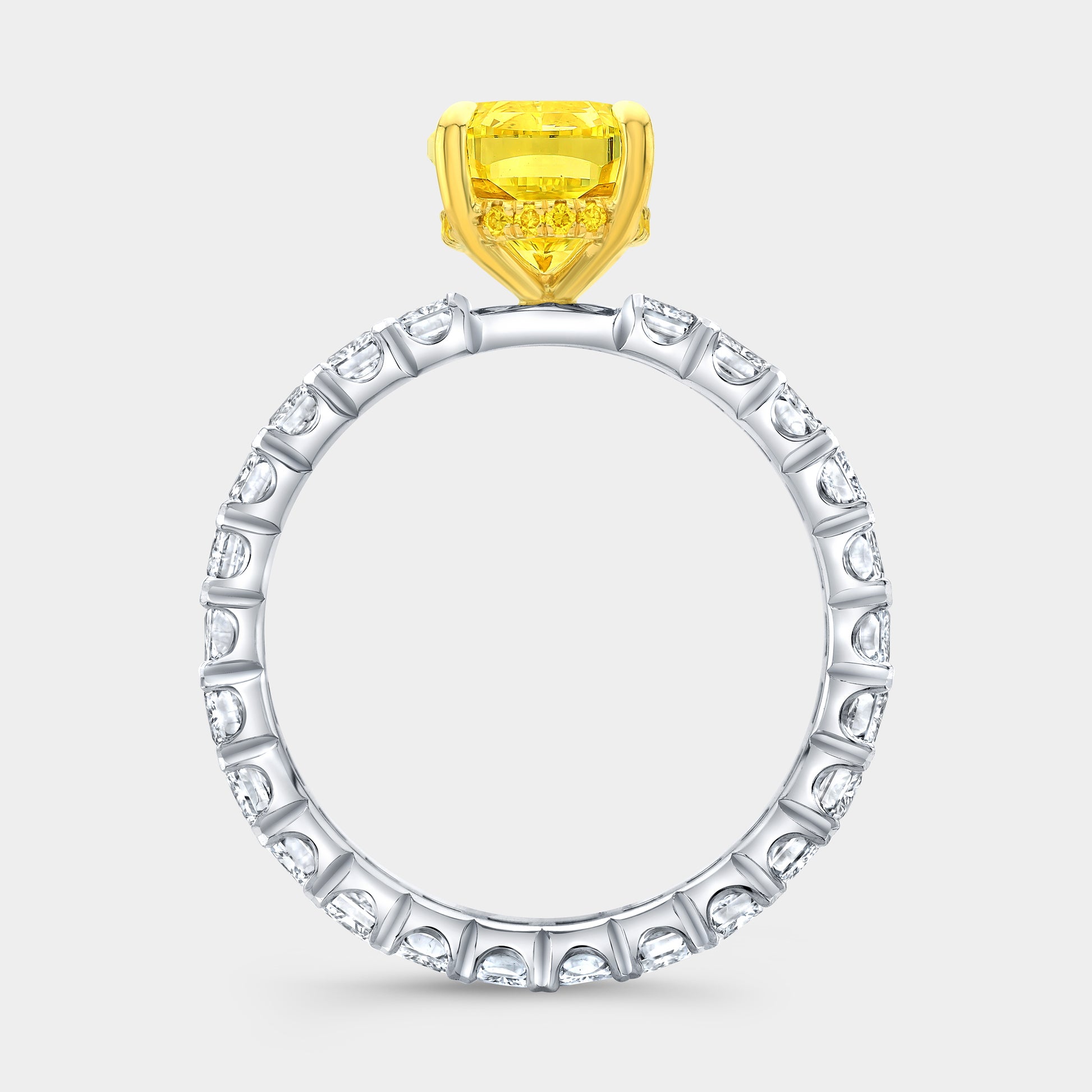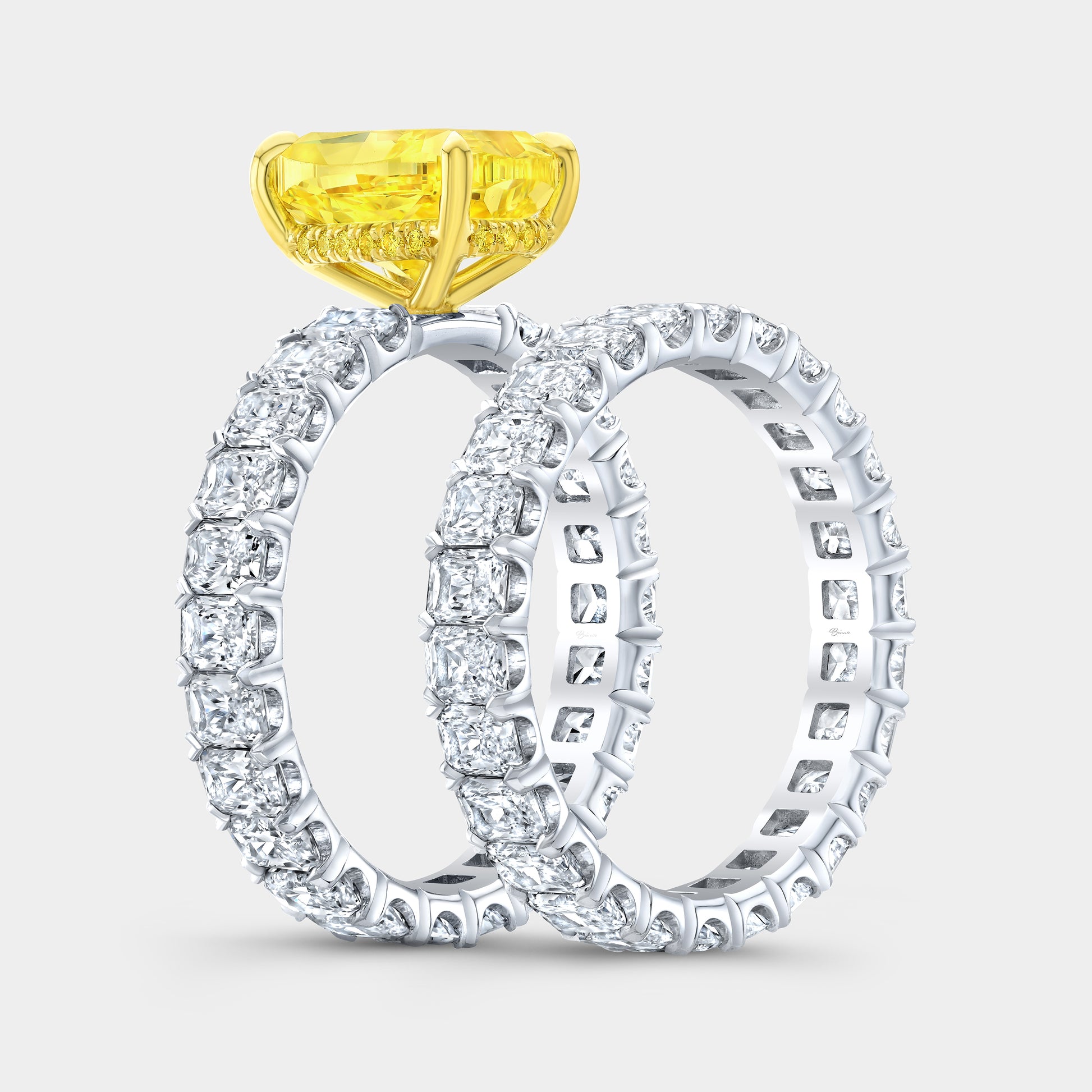 3ct Cushion Canary Yellow Diamond with Radiant Cut Diamond Eternity Ring