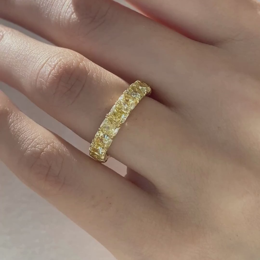 5.5ct Cushion Cut Fancy Yellow Diamond Eternity Band