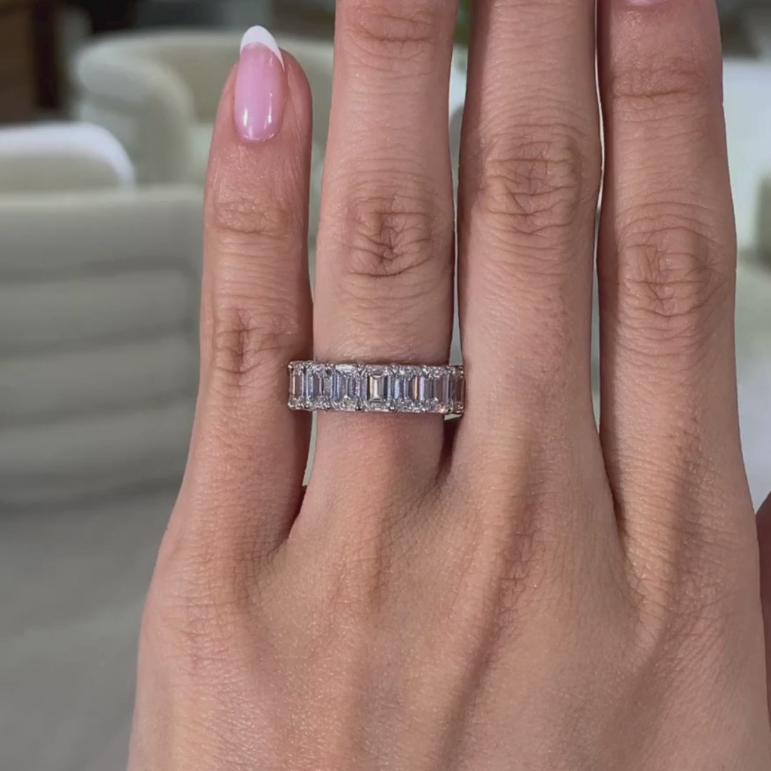 Lab Grown Emerald Cut Diamond, Platinum, Double Gallery, ~8.85ct Eternity Wedding Band, Finger Size 6