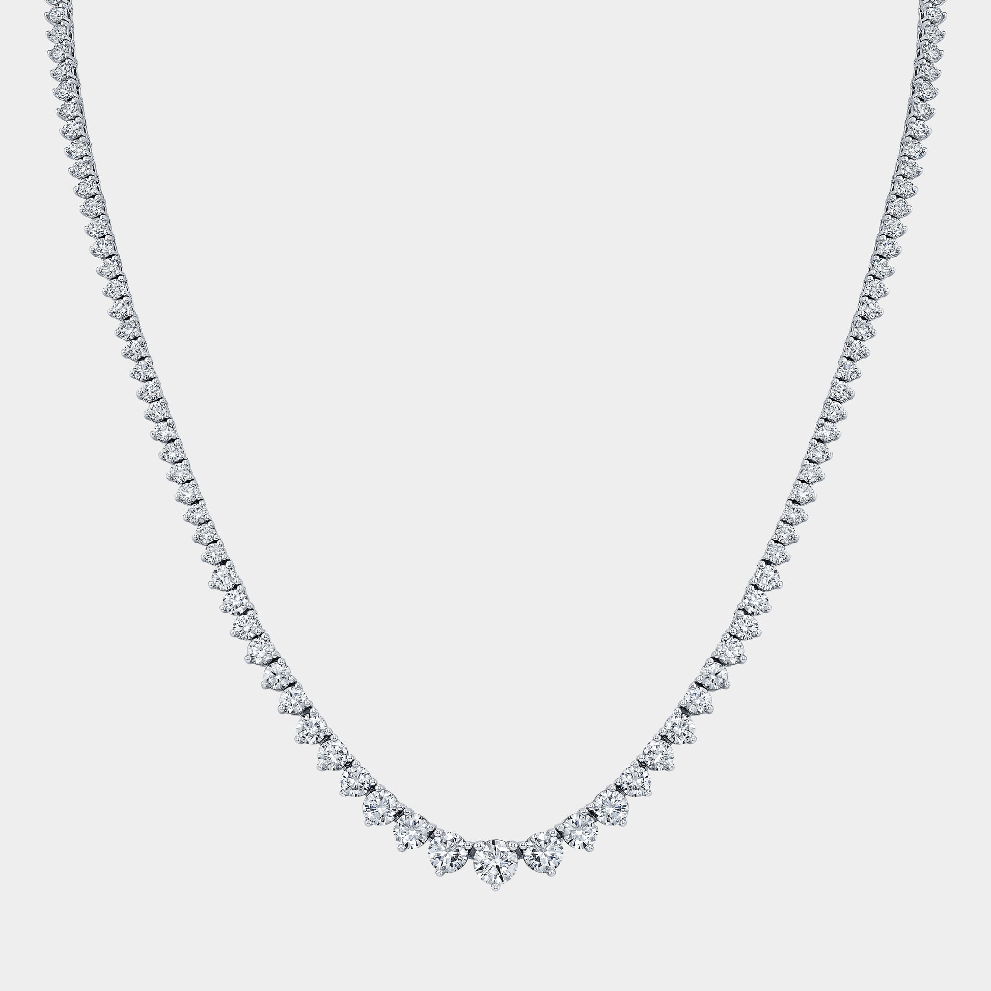 16-Inch Tennis Necklace, 8ctw Lab Grown Round Brilliant Graduating Diamonds, 3-Prong Setting, 14k White Gold.