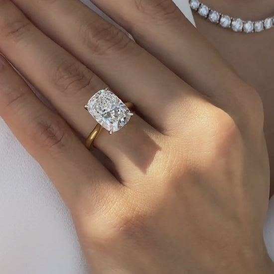 6ct Cushion Cut Diamond, Two Tone - 18k Yellow Gold & Platinum, Hidden Halo, Tapered Cathedral, 2.40mm Solitaire ~0.10ct Engagement Ring