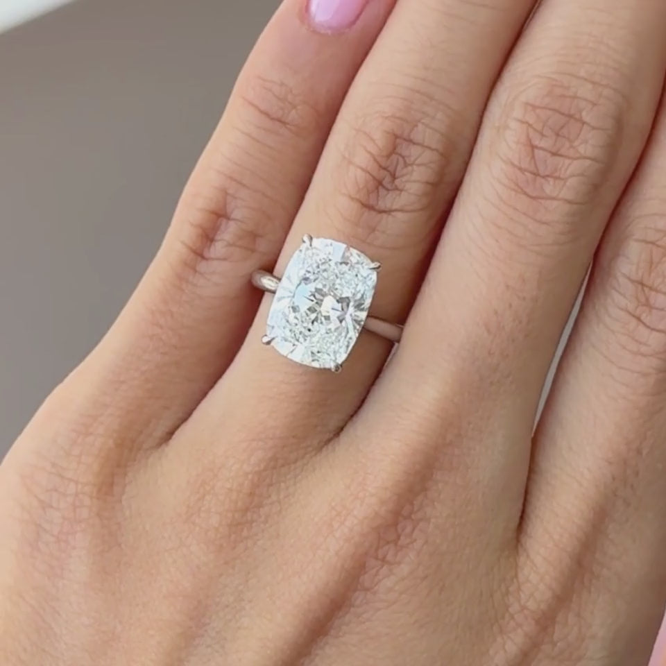 6.5ct Cushion Cut Lab Grown Diamond, Platinum, Wire Basket, Tapered Cathedral, 2.20mm Solitaire Engagement Ring.