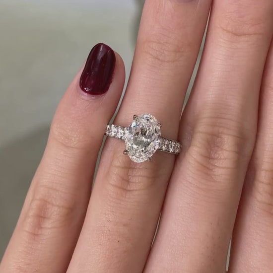 Oval Diamond Reverse Taper Pave Platinum Engagement Ring
