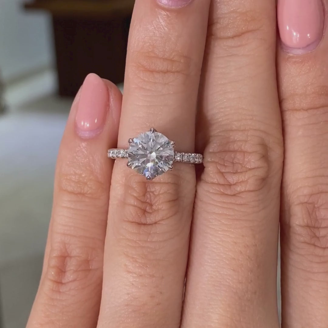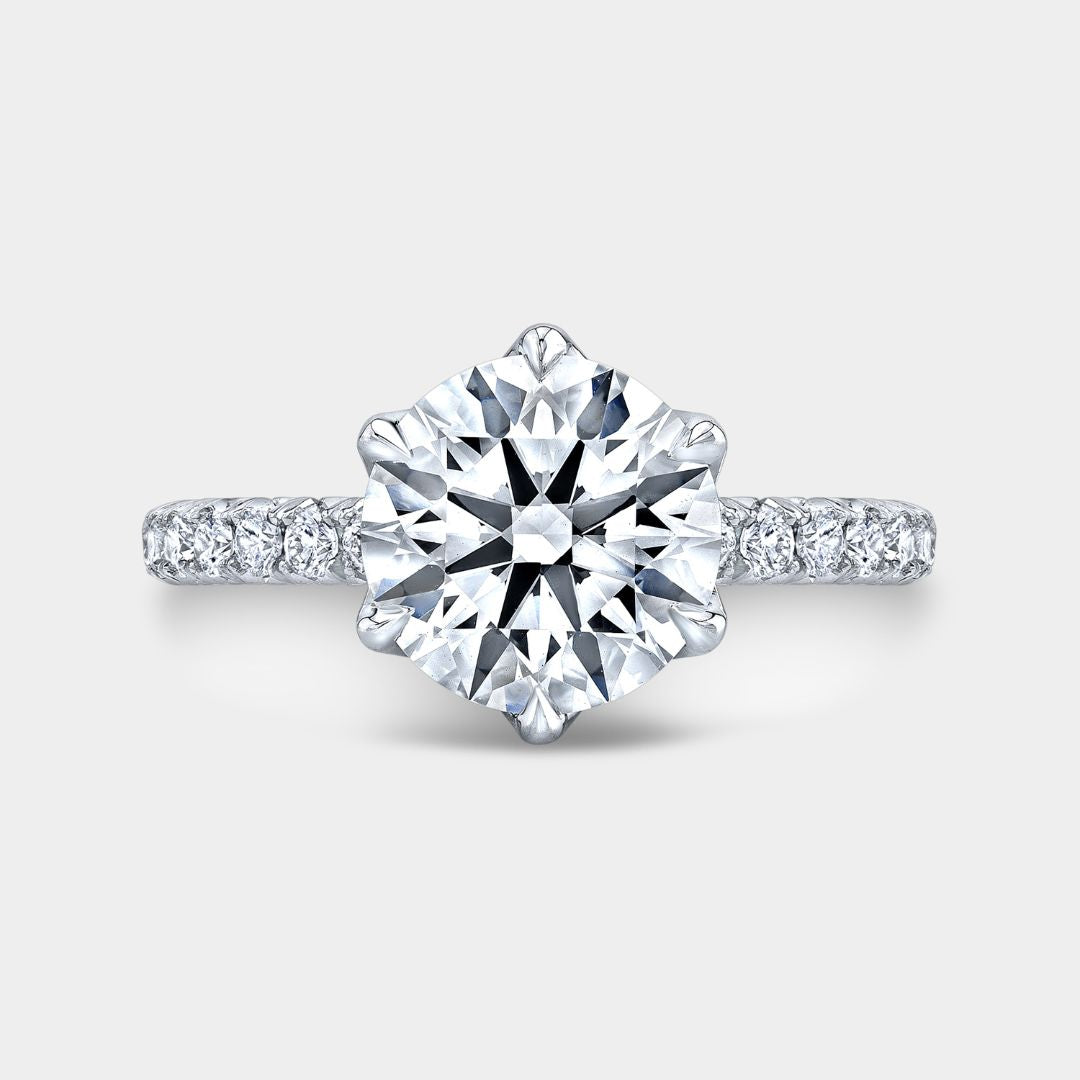 2ct Round Cut Diamond, 14k White Gold, 6 Prong, Tulip Basket, 2.00mm French Pave ~0.30ct Engagement Ring