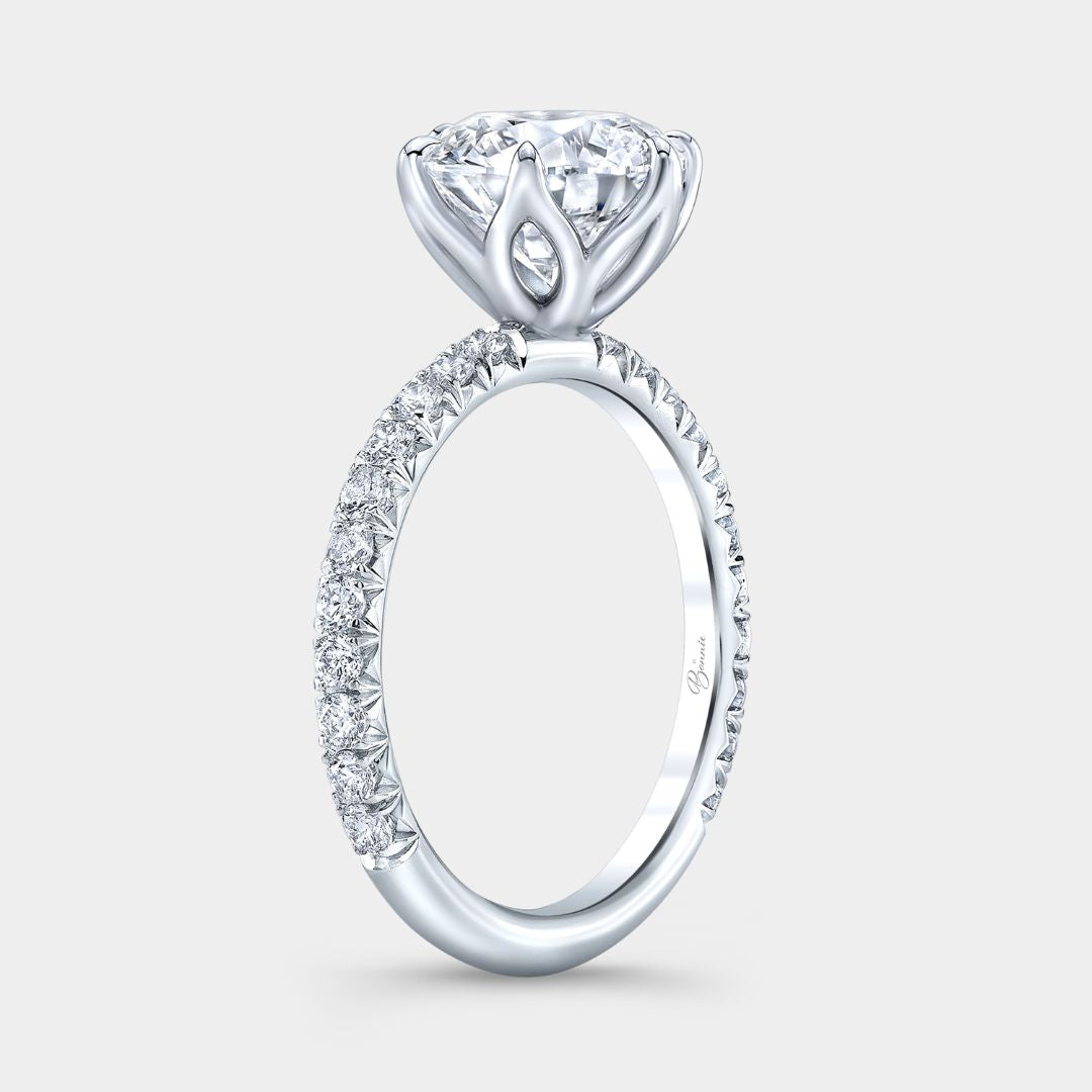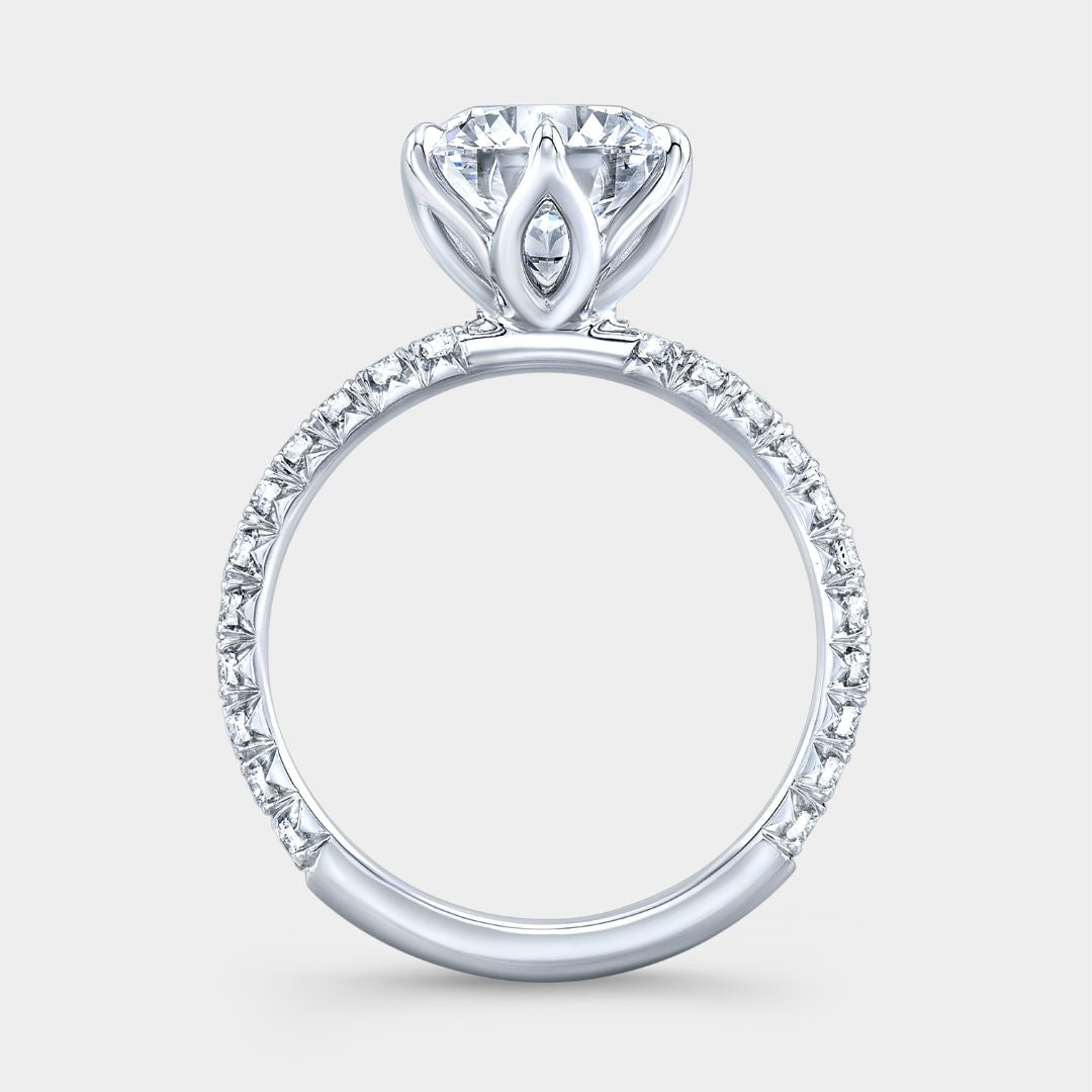 Round Diamond 6 Prong Tulip French Pave White Gold Engagement Ring