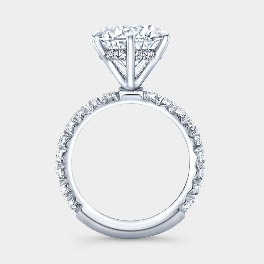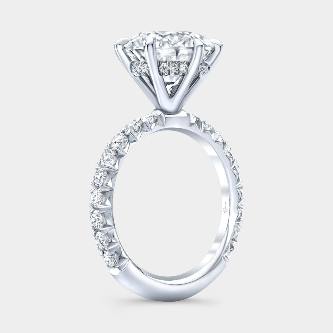 Round Diamond High Set Hidden Halo French Pave Platinum Engagement Ring