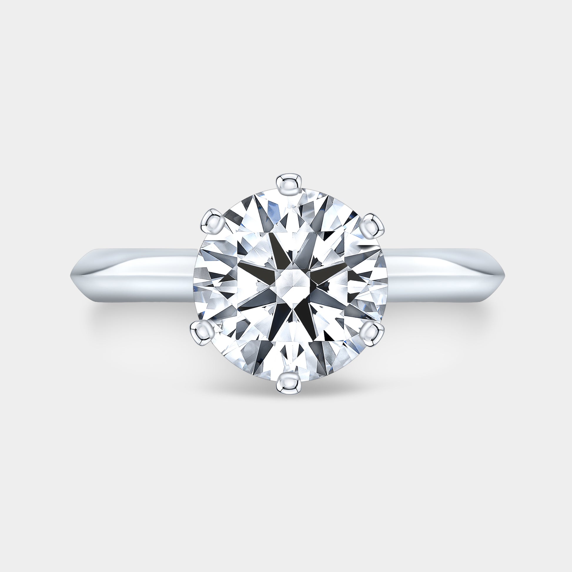 2ct Round Cut Diamond, Platinum, Knife Edge, 6 Flat End Prong, 2.30mm Solitaire Engagement Ring