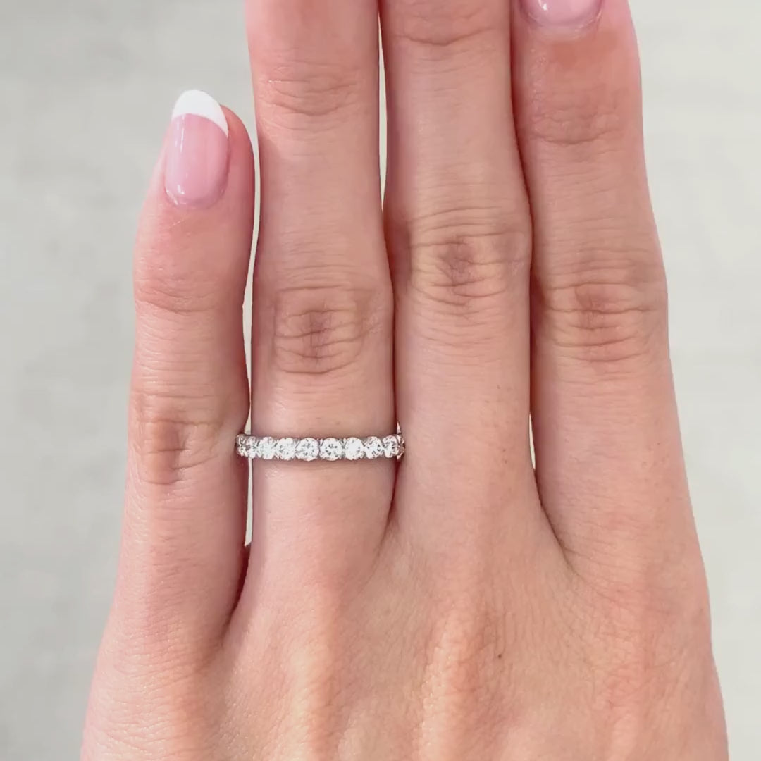 Round Brilliant Cut Diamonds, 18k Yellow Gold, Split Shared Prong, 1/2 Way, 2.45mm Wedding Band