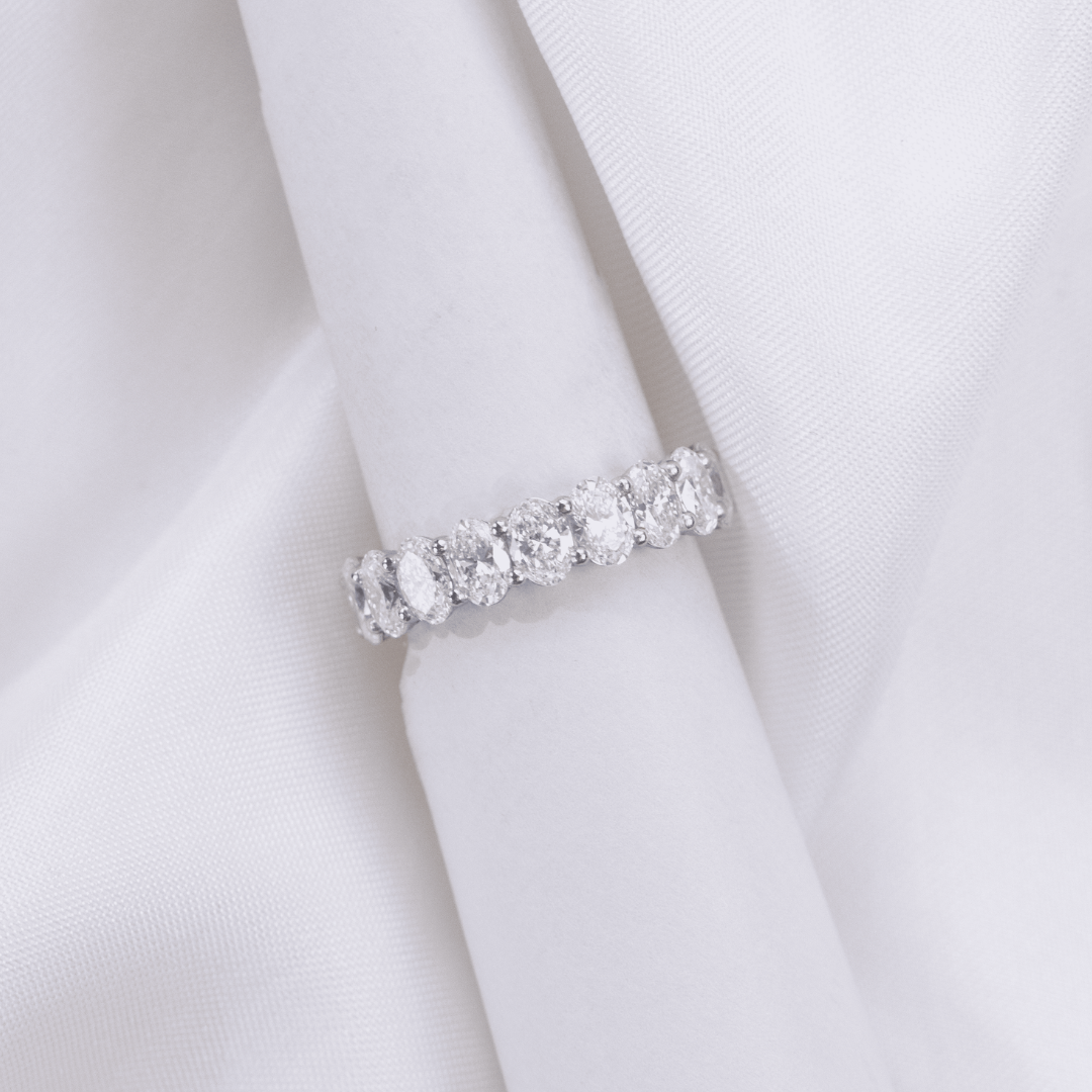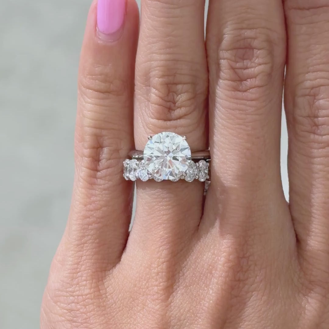 3ct Oval Cut Diamonds, White Gold, 5.70mm Low Profile Shared Prong Wedding Band